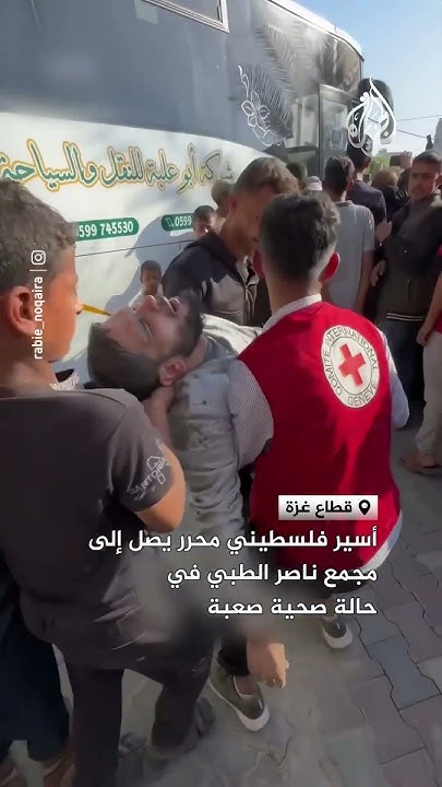أسير فلسطيني محرر يصل مجمع ناصر الطبي بحالة حرجة عقب الإفراج عنه